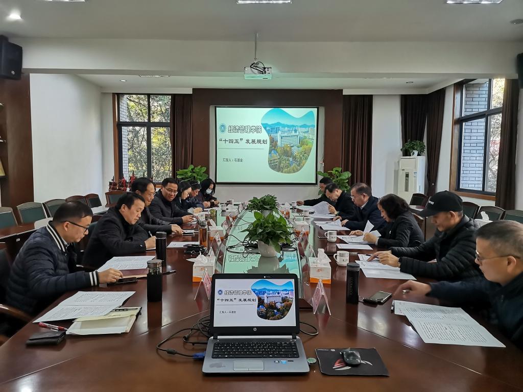 学院召开“十四五”发展规划论证会 为做好 “十四五”发展规划编制工作,学院于11月14日下午召开“十四五”发展规划论证会。校党委书记沈满洪、副校长沈月琴、规划处处长梅亚明、文科处处长王成军、国家级人才孔凡斌教授、吴伟光教授出席,论证会由学院党委书记周凯主持。石道金院长从指导思想、发展方略、发展目标、任务与举措四个方面对规划作了详细介绍,重点介绍了学院“十四五”研究型学院建设的目标、规模、学科方向、学位点平台与团队等关键点。 沈满洪...