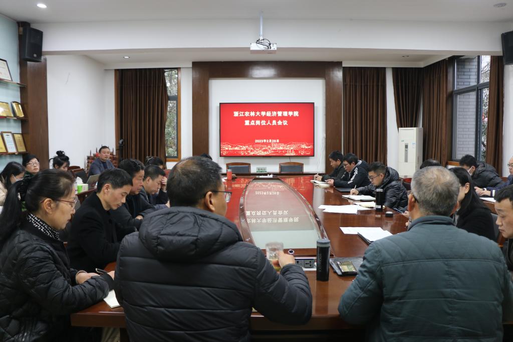 学院召开重点岗位人员会议 2月28日下午,beat365在线唯一官网重点岗位人员会议在208会议室召开,学院党政班子成员、学院重点岗位人员等参加了会议。会议由院长吴伟光主持。 会上,学院党委书记周凯对教师工作提出三点要求:一要进一步凝练学院特色优势,找准办学定位,扎实做好研究型学院规划落实;二要牢牢抓住学校人才引进的窗口期,引培结合,建设高水平人才梯队,大力弘扬担当精神,积极参与学院公共事务建设;三要学习贯彻落实二十大精神,发挥党组织...