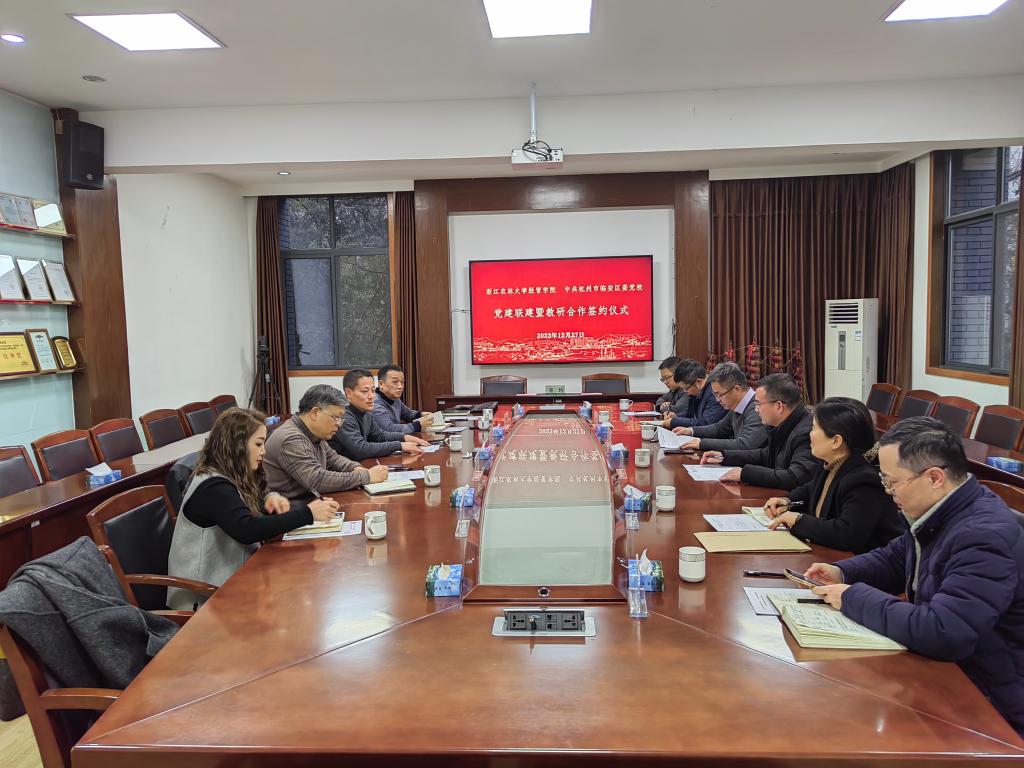 beat365在线唯一官网与临安区委党校签订合作协议 为落实第二轮区校合作相关要求精神,12月27日下午,beat365在线唯一官网与临安区委党校合作协议签约仪式在西大楼208会议室举行。临安区委党校常务副校长袁忠明、副校长吴马峰、副校长潘爱平,beat365在线唯一官网党委书记陈劲松、副院长蔡细平以及双方多名代表参加了本次签约仪式。仪式由副院长蔡细平主持。陈劲松介绍了学院的基本情况和发展目标。他指出,今天的签约是双方积极落实第二轮区校合作相关要求精神的具体行动,是双方深度合作的开端。学院...