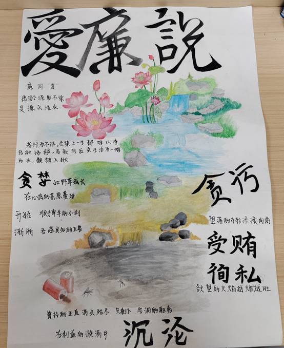 本次廉洁主题设计比赛学院12个学生支部56名同学共提交作品63件,涵盖了书法、剪纸、泥塑、视觉设计等多种类型,各式作品以“经清廉理”学院清廉文化品牌为脉络,将尚廉崇廉、持廉守正的精神内核融入创作,从中评选出12件优秀作品。