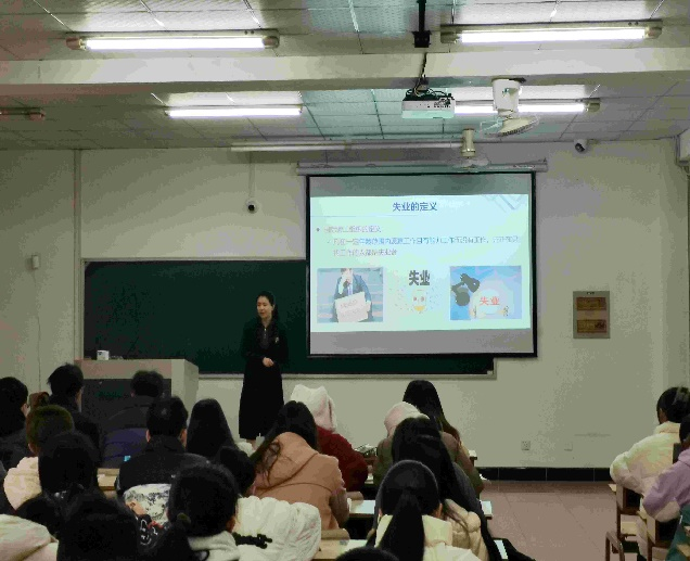 朱哲毅老师以《宏观经济学》课程中“失业”这一教学点为主题,以“在你眼中,什么是失业?”的问题导入,或图文并茂的讲解、或提问、或启发式的开展课堂讨论,循序渐进、循循善诱,把知识点讲解得既通俗易懂由具有高阶性,呈现了一堂精彩的示范课。朱老师教态温婉,课堂教学设计科学、规范、重点突出,课堂驾驭能力强,表现出了较高的教学素养。青年教师认真观摩,课后与朱老师交流研讨,纷纷表示深受启发。