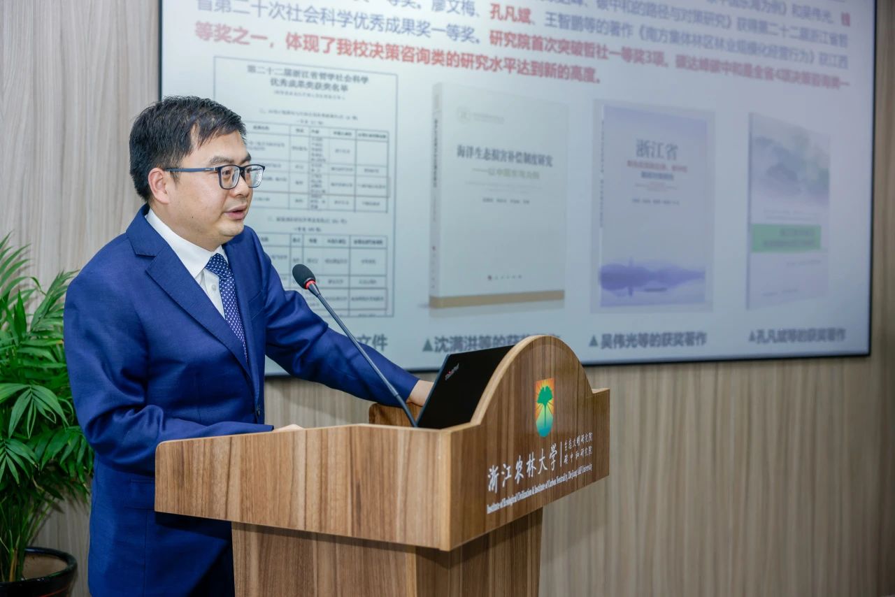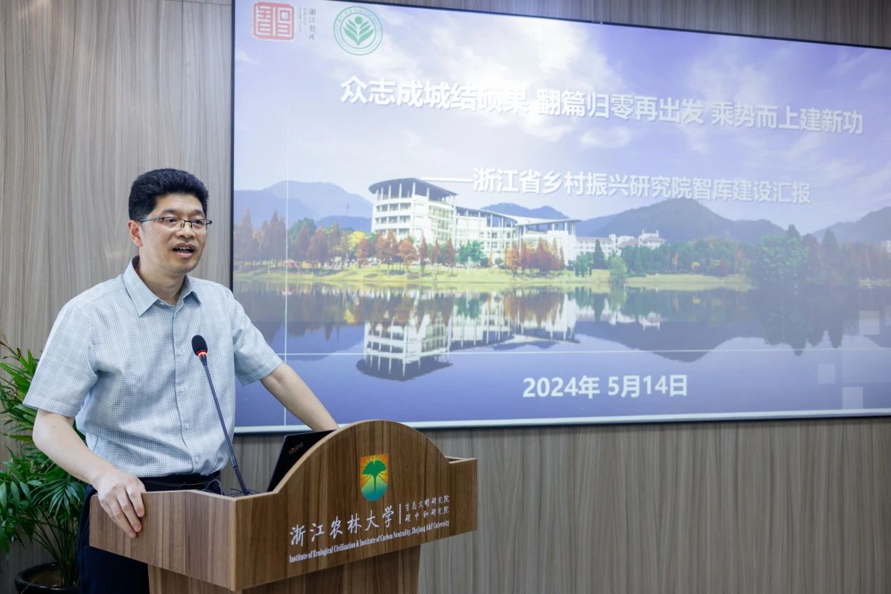 潘伟光执行院长、钱志权副院长分别代表beat365在线唯一官网浙江省乡村振兴研究院、beat365在线唯一官网生态文明研究院汇报了智库建设进展,详细介绍了智库在科学研究、成果获奖、服务地方等方面取得的成绩,同时汇报了智库的未来发展规划。