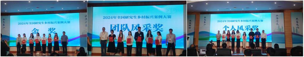 2024年6月19日至21日,beat365官网朱哲毅副教授和宁可副教授带领其硕士研究生团队赴贵州省麻江县参加“2024年全国研究生乡村振兴案例大赛”决赛。经过激烈角逐,团队参赛项目《乡村生态产品促进农民农村共同富裕的模式与机制研究》荣获金奖,团队成员的出色表现荣获“团队风采奖”,项目负责人施芳同学获“个人风采奖”,为学校争光添彩。