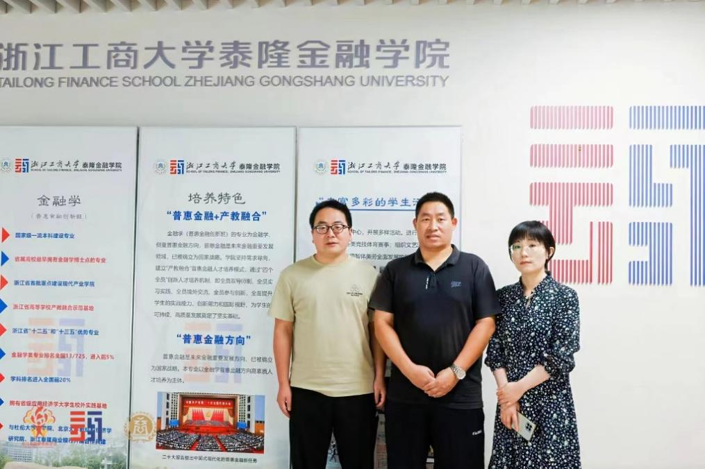 为了全面落实立德树人根本任务,合理修订金融工程专业等金融类人才培养方案中普惠金融选修方向,beat365官网应用经济学学科金融工程专业负责人顾光同教授、骨干教师孙阳阳博士、鄢云博士于2024年7月11-13日借助由浙江工商大学泰隆金融学院和浙江泰隆慈善基金会主办、浙商资本市场研究院协办的第二届“商泰”共同富裕—普惠金融高级师资研修班,分别赴浙江工商大学泰隆金融学院、泰隆银行总部、恒生电子总部开展行业人才需求、产业需求调研学习。