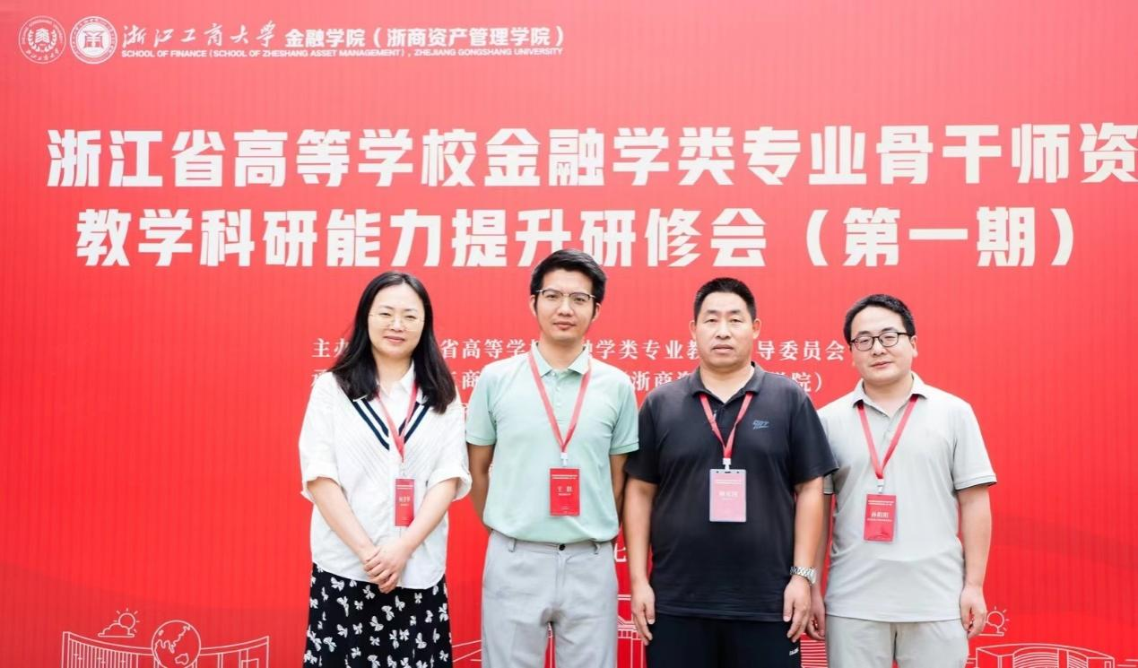 为全面贯彻落实二十大精神和浙江省委省政府关于“金融强省”和“高教强省”建设的要求,2024年7月14日,浙江省高等学校金融学类专业教学指导委员会联合浙江工商大学金融学院(浙商资产管理学院)、浙江工商大学教务处、钱塘江金融港湾高等教育联盟以及浙江省金融科技产教融合联盟举办2024年浙江省高等学校金融学类专业骨干师资教学科研能力提升研修班(第一期)。beat365官网应用经济学学科金融工程专业负责人顾光同教授、骨干教师何青华博士、孙阳阳博士、王跃博士受邀参加研修班。