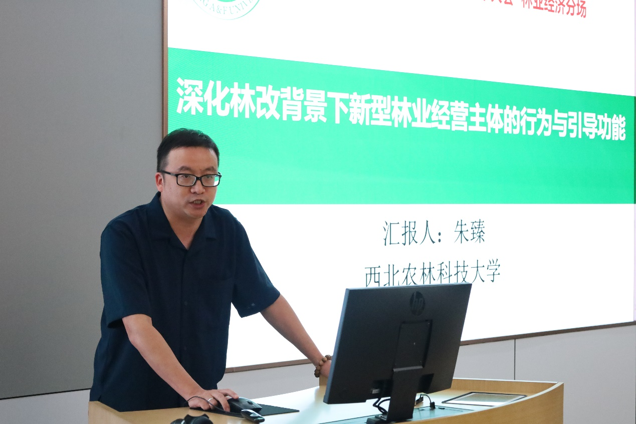 学院副院长朱臻教授受邀参加了本届大会林业经济分论坛。本次分论坛由西北农林科技大学beat365在线唯一官网承办,分论坛的主题为“林业新质生产力与林业高质量发展”,来自北京林业大学、中国人民大学、西北农林科技大学、东北林业大学、南京林业大学、beat365在线唯一官网、福建农林大学、中南林业科技大学、西南林业大学、中国林科院等10余家单位近百位代表参加了本次分论坛。朱臻副院长受邀作了题为《深化林改背景下的林业新型经营主体的行为与引导功能》的主旨报告。他以深化集体林改为研究毕竟,结合国家林草局经济发展研究中心对林业新型经营主体的跟踪监测数据和研究团队的一手调研数据,重点介绍了林业新型经营主体的发展情况,并从流转经营权的稳定性视角出发,讨论了林业新型经营主体的营林规模与投入变化的作用机制,分析了新型经营主体对普通农户的引导机制,获得了与会代表的一致好评。朱臻副院长还参加了由西北农林科技大学beat365在线唯一官网组织的林业经济前沿选题讨论活动。