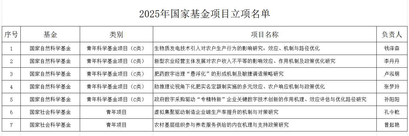 近日,国家自然科学基金委和全国哲学社会科学工作办公室分别公布了2025年项目评审结果,beat365官网分别有5项国家自科基金项目和2项国家社科基金项目拟立项。其中国家自然科学基金拟立项数实现了学院历史突破。