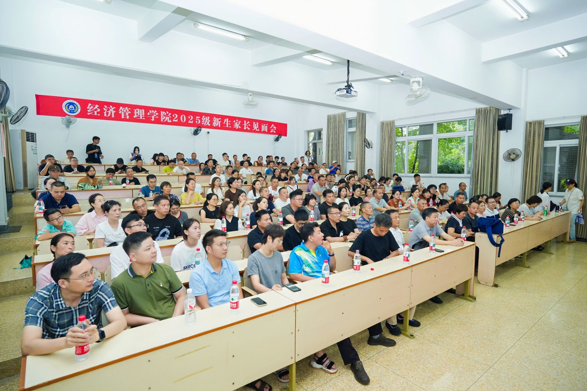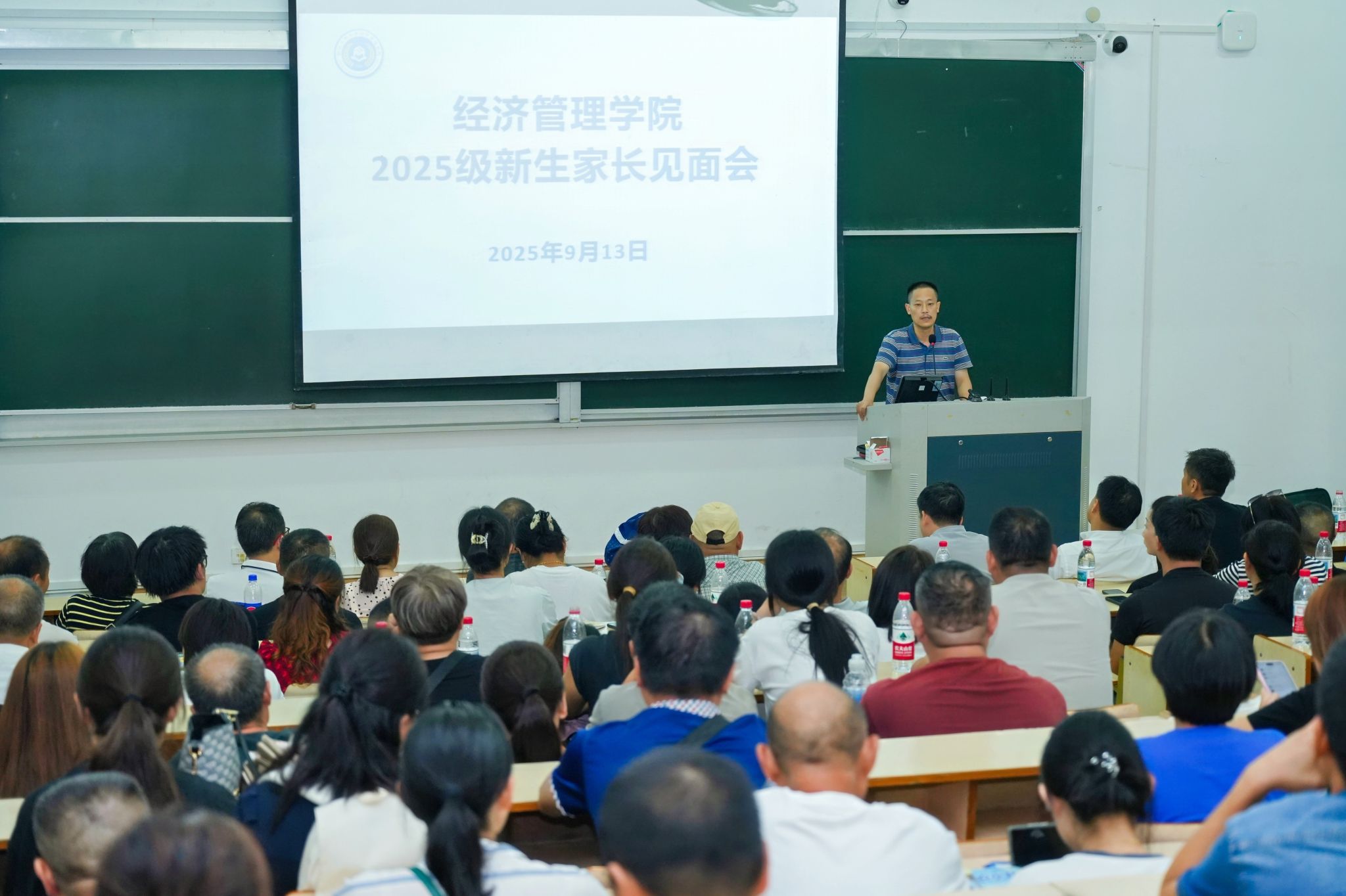学院召开新生家长交流会,学院党委书记陈劲松为新生家长讲述学院发展情况,学科专业负责人现场答疑解惑。