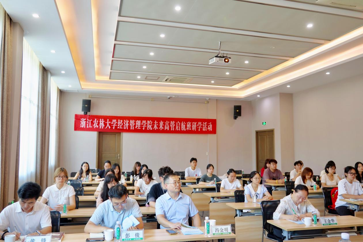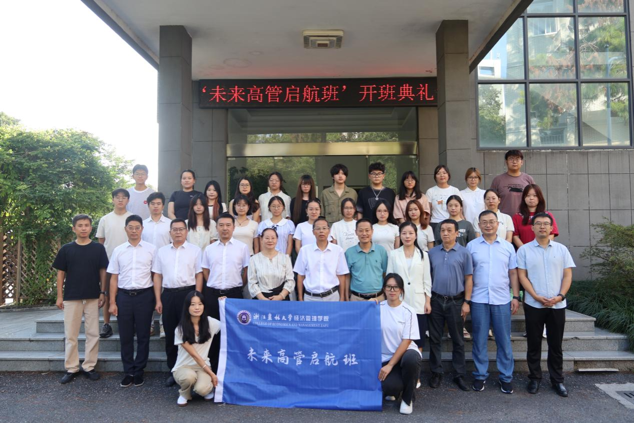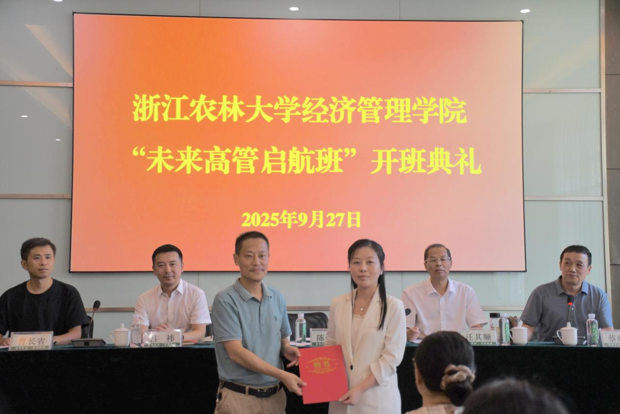 2025年9月27日下午,beat365在线唯一官网beat365在线唯一官网“未来高管启航班”开班典礼在衣锦校区顺利举行。学院党委书记陈劲松、副院长蔡细平,临安区经济和信息化局原局长汪其顺、中信银行临安支行副行长吕祎,外聘导师傅贤军、罗娅娟、赵云飞,中国工业合作协会合规能力建设分会秘书长王金华,以及助教团教师、首期26名学员共同出席。典礼由副院长蔡细平主持。