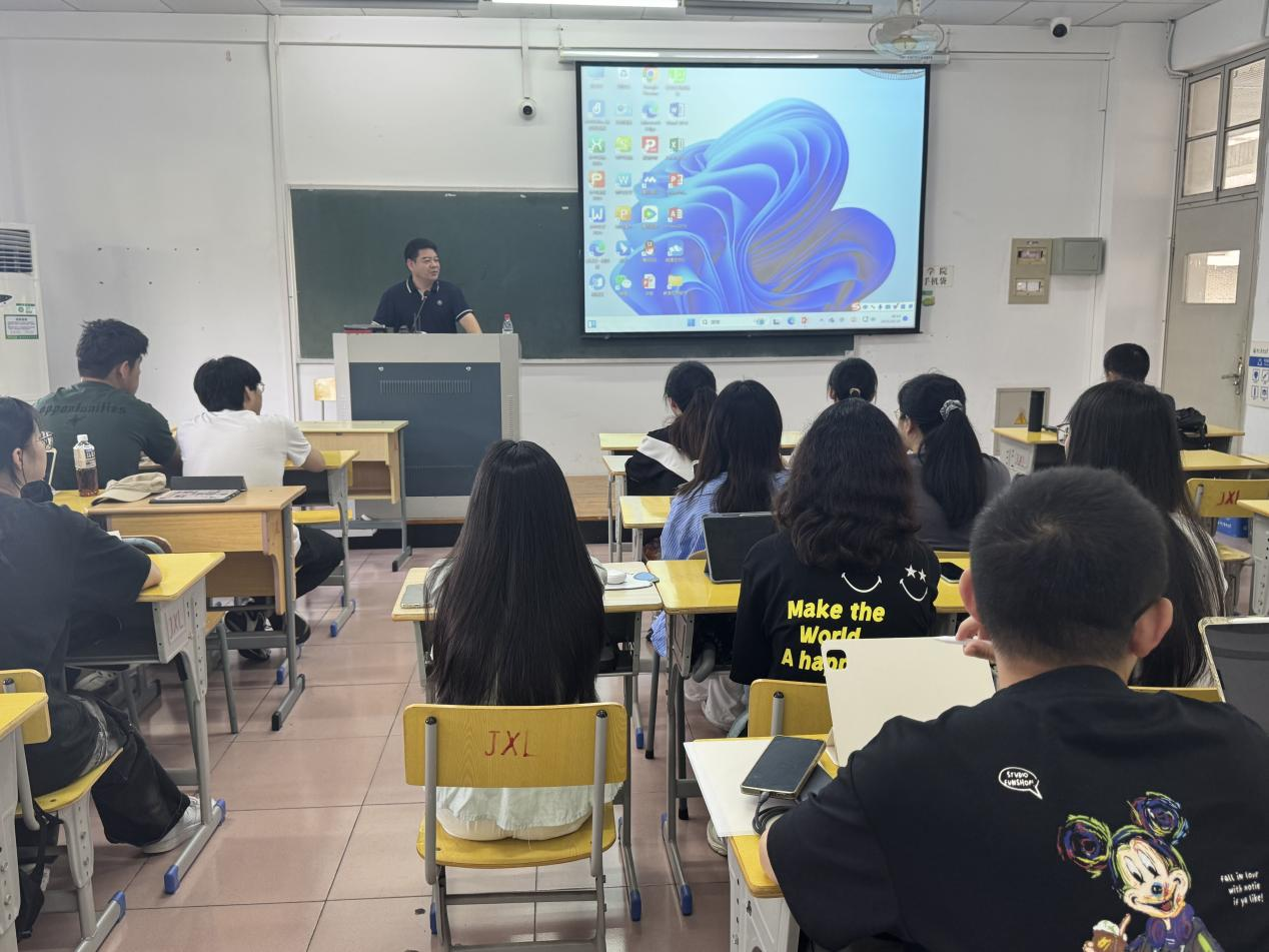 张国庆教授在开场致辞中,对孙建文董事长的到来表示热烈欢迎和衷心感谢。他指出“企业家进课堂”是学院深化校企合作、培养高素质应用型人才的关键路径,旨在帮助同学们汲取前沿的行业智慧,提升职业素养,为未来精准就业奠定坚实基础。