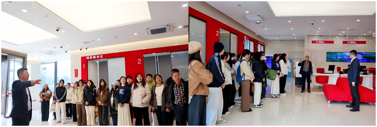 学员们首先参观了中信银行临安支行和中信证券临安营业部办事大厅、客户服务区及办公区域,近距离观察业务办理流程、服务标准与办公环境,对金融机构的日常运营建立起直观认知。