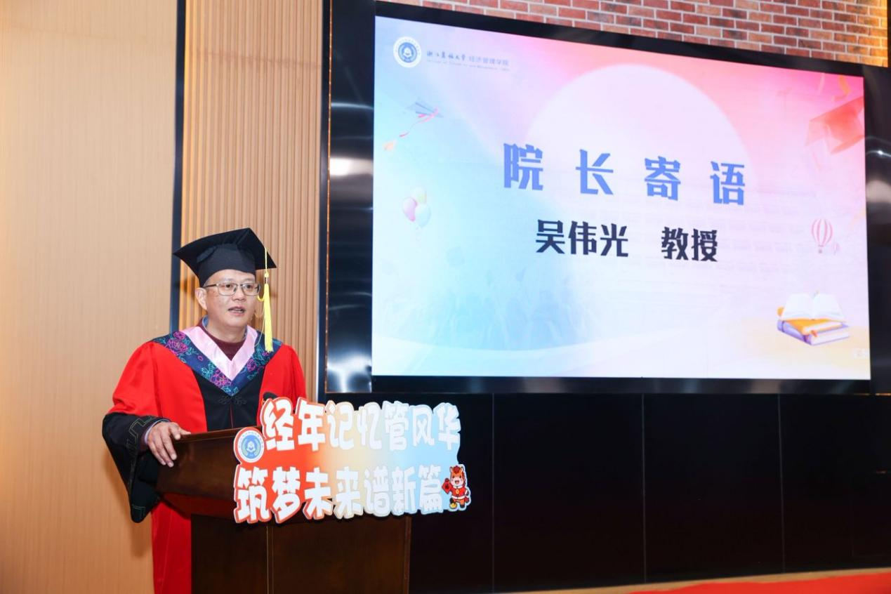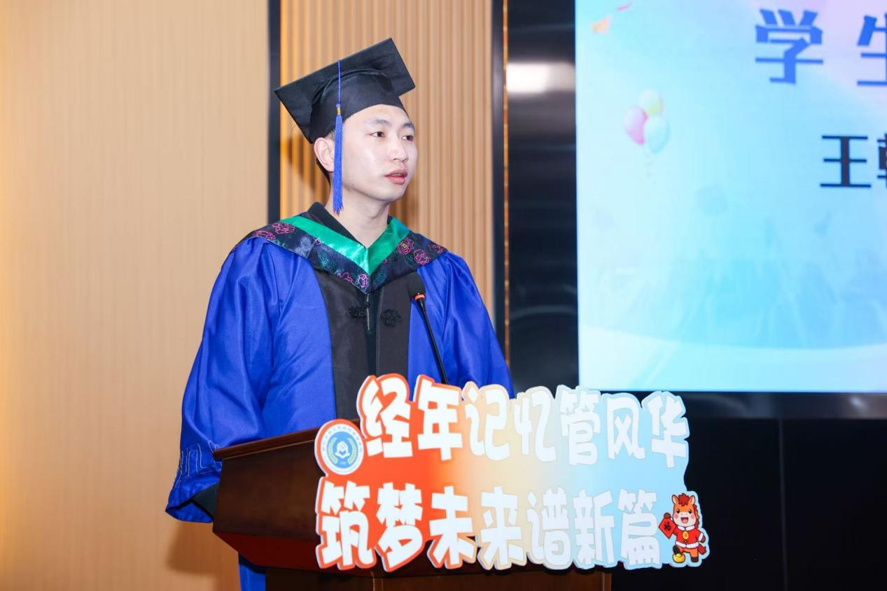 吴伟光院长为毕业生们送上寄语。他表示,beat365在线唯一官网一直是每一位同学坚强的后盾。他把“经年记忆,筑梦未来”这个主题词赠予毕业生们,并提炼三句话与大家共勉:一是,愿毕业生们如“种子”,扎根大地,生生不息;二是,愿毕业生们如“桥梁”,连接智能,引领未来;三是,愿毕业生们如“灯塔”,守正拓新,照亮前程。最后,他祝愿毕业生们在未来的道路上,无论是平坦还是崎岖,无论是顺利还是多艰,愿他们都能“脚踏实地、追求卓越”,勇敢地追逐梦想,积极地拥抱变革!