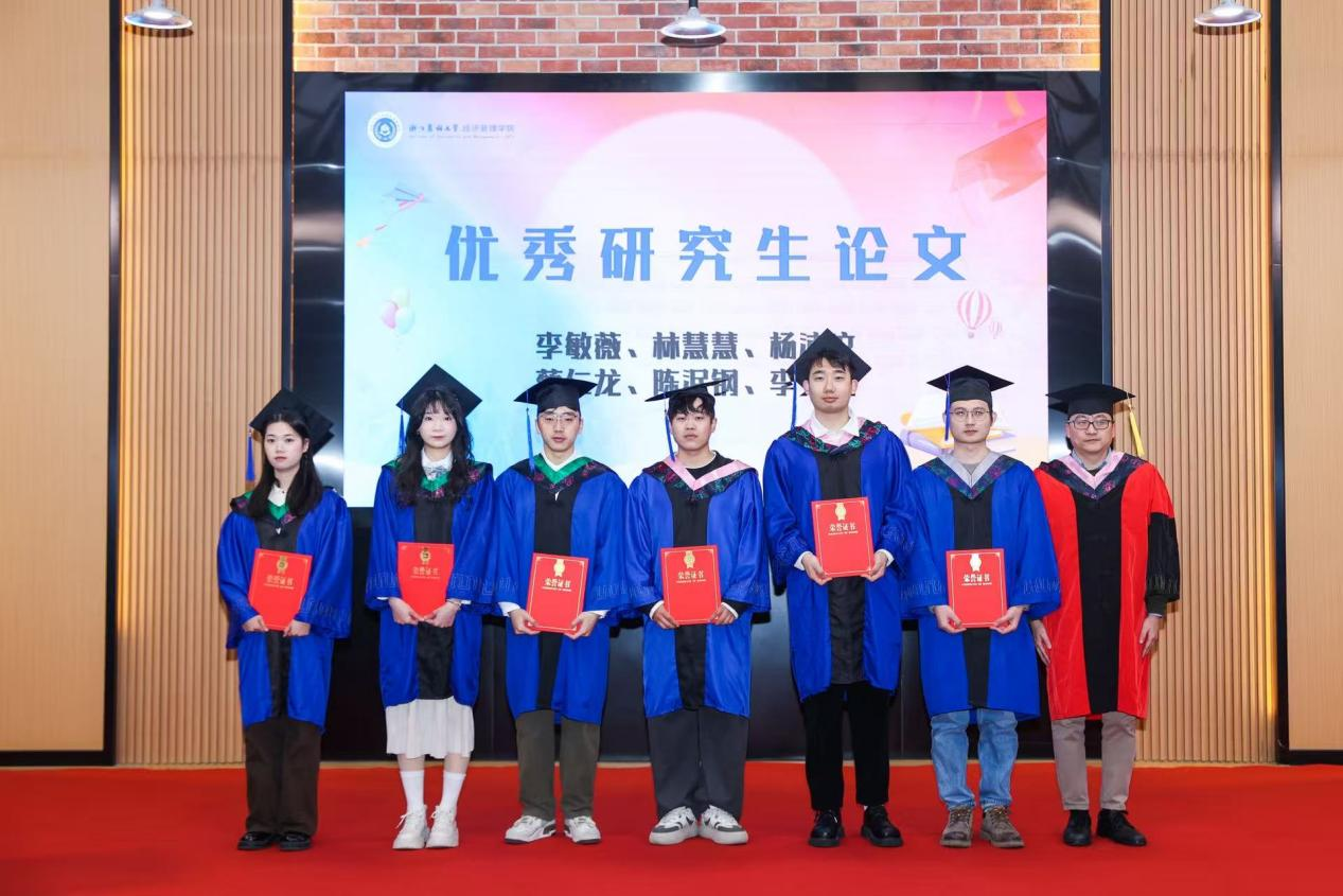 副院长蔡细平为校友联络员颁发了聘书,副院长朱臻为优秀研究生学位论文获得者颁发了荣誉证书。