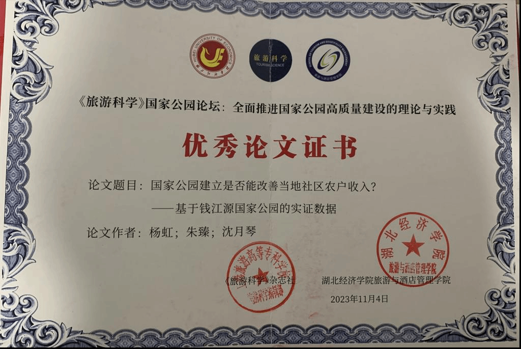 11月4日-5日,由湖北经济学院和《旅游科学》杂志社主办,的“全面推进国家公园高质量建设的理论与实践”论坛在湖北经济学院顺利召开。本次论坛的主题为“全面推进国家公园高质量建设的理论与实践”,来自国务院发展研究中心、中国科学院、清华大学、南京大学、北京林业大学等25个研究机构和高校的10多位专家学者和100多名师生参加本次大会。会议由湖北省林业局副局长宋丛文发表致辞,国务院发展研究中心研究员、《管理世界》杂志社副社长苏杨研究员,中国科学院地理科学与资源研究所钟林生教授,南京大学地理与海洋科学学院章锦河教授,中国旅游研究院生态旅游研究基地主任马勇教授,上海师范大学旅游学院副院长、《旅游科学》杂志社主编张宏梅教授等人出席会议并做大会主旨报告。在平行分论坛环节,与会师生围绕国家公园游憩与自然教育、国家公园生态价值实现与特许经营、国家公园社区发展与制度创新三个主题开展了学术交流。