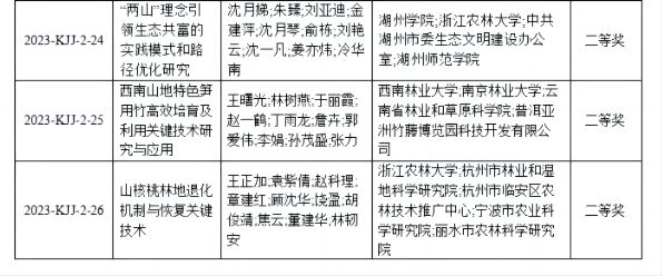 8月5日,中国林学会公布了第十四届梁希林业科学技术奖获奖名单。沈月琴教授、朱臻教授作为主要完成人共同完成的“两山理念引领生态共富的实践模式和路径优化研究”成果喜获梁希林业科学技术进步二等奖。该成果以绿水青山就是金山银山理念为架构,从政治领富、产业造富、文化润富、治理稳富、环境创富、制度共富六个层面全面考察浙江省生态共富实践的历史进程、主要做法和显著成效,总结提炼了锚定领富党建链、壮大造富产业链、厚植润富文化链、提升稳富治理链、优化创富生态链、创新共富制度链“六链融合”为核心的生态共富实践模式,通过率先构建生态共富的指标评价和 制度体系,总结提炼生态共富的优化路径。据悉,梁希林业科学技术奖是经国家科学技术部批准的,面向全国的林业科技术奖,在林业科学技术领域有着重要地位。本届梁希林业科学奖共评出获奖项目143项和国际科技合作奖获奖者1名,其中自然科学奖14项,技术发明奖4项,科技进步奖125项。梁希林业科学技术奖是经国家科学技术部批准的,面向全国的林业科学技术奖,在林业科学技术领域有着重要地位。