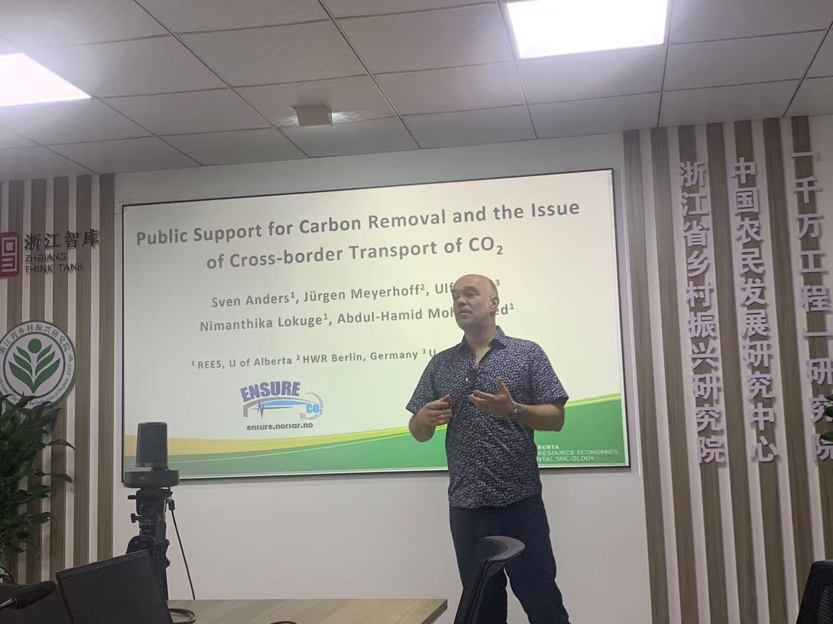 6月20日上午,beat365在线唯一官网第118期学术论坛在乡村振兴研究院310会议室举行,来自加拿大阿尔伯塔大学Sven Anders教授作了题为“Public Perceptions and Preferences for Carbon Removal using CCS - Experimental Evidence for Europe and Canada”的学术报告。华中农业大学beat365在线唯一官网张露教授,学院30多位教师代表及研究生、本科生参加了本次学术活动,报告会由朱臻副院长主持。