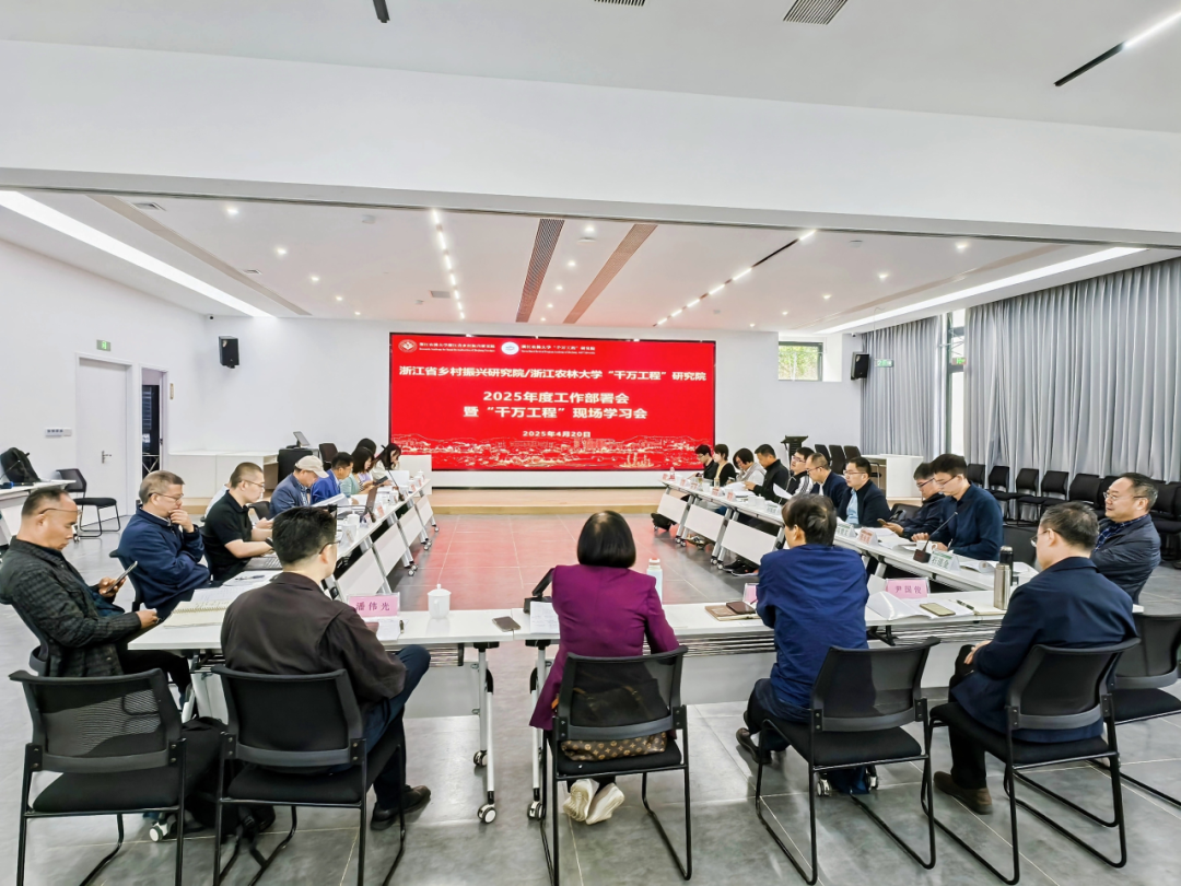 4月20日,浙江省乡村振兴研究院(beat365在线唯一官网“千万工程”研究院)2025年度工作部署会暨“千万工程”现场学习会在指南村召开。研究院院长沈月琴,首席专家、副院长张俊飚,执行院长潘伟光,副院长尹国俊,方向带头人、主任(所长)和副主任(副所长)、研究人员代表等30余人参加了会议。沈月琴、潘伟光、张俊飚、尹国俊分别主持会议。