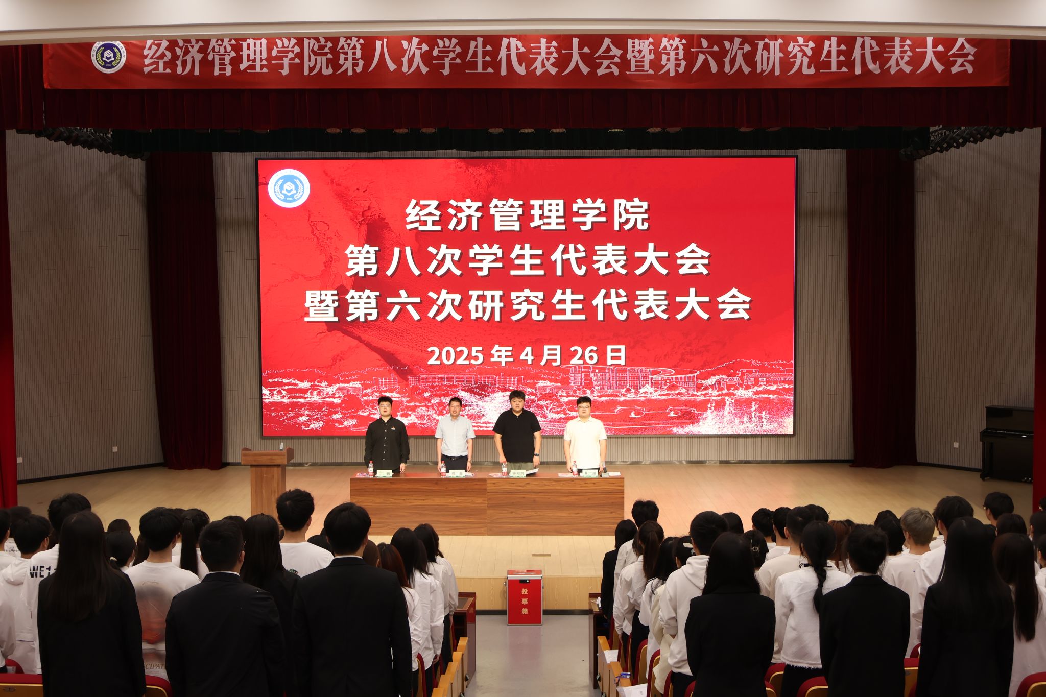 4月26日下午,beat365在线唯一官网第八次学生代表大会、第六次研究生代表大会在衣锦报告厅举行。院党委副书记曹磊、院团委书记钟程凯、院研究生辅导员丁鹏出席会议。学院学代会、研代会代表共144人参加了会议。会议由学生会秘书长蔡广越主持。