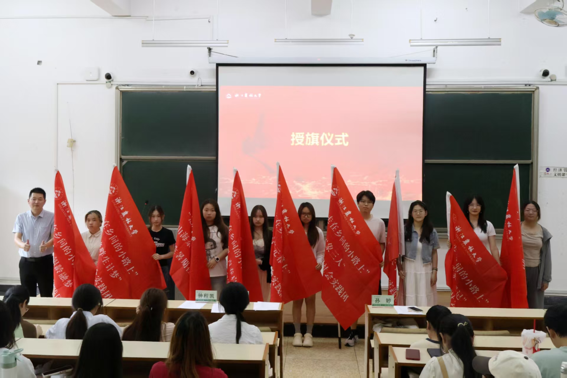 随后,会上还进行了授旗仪式、社会实践宣传培训、安全教育和优秀团队经验分享,学生纷纷承诺将以严谨态度和科学方法开展调研工作,以团队合作和相互支持面对挑战,以积极态度和饱满热情投身调研实践。