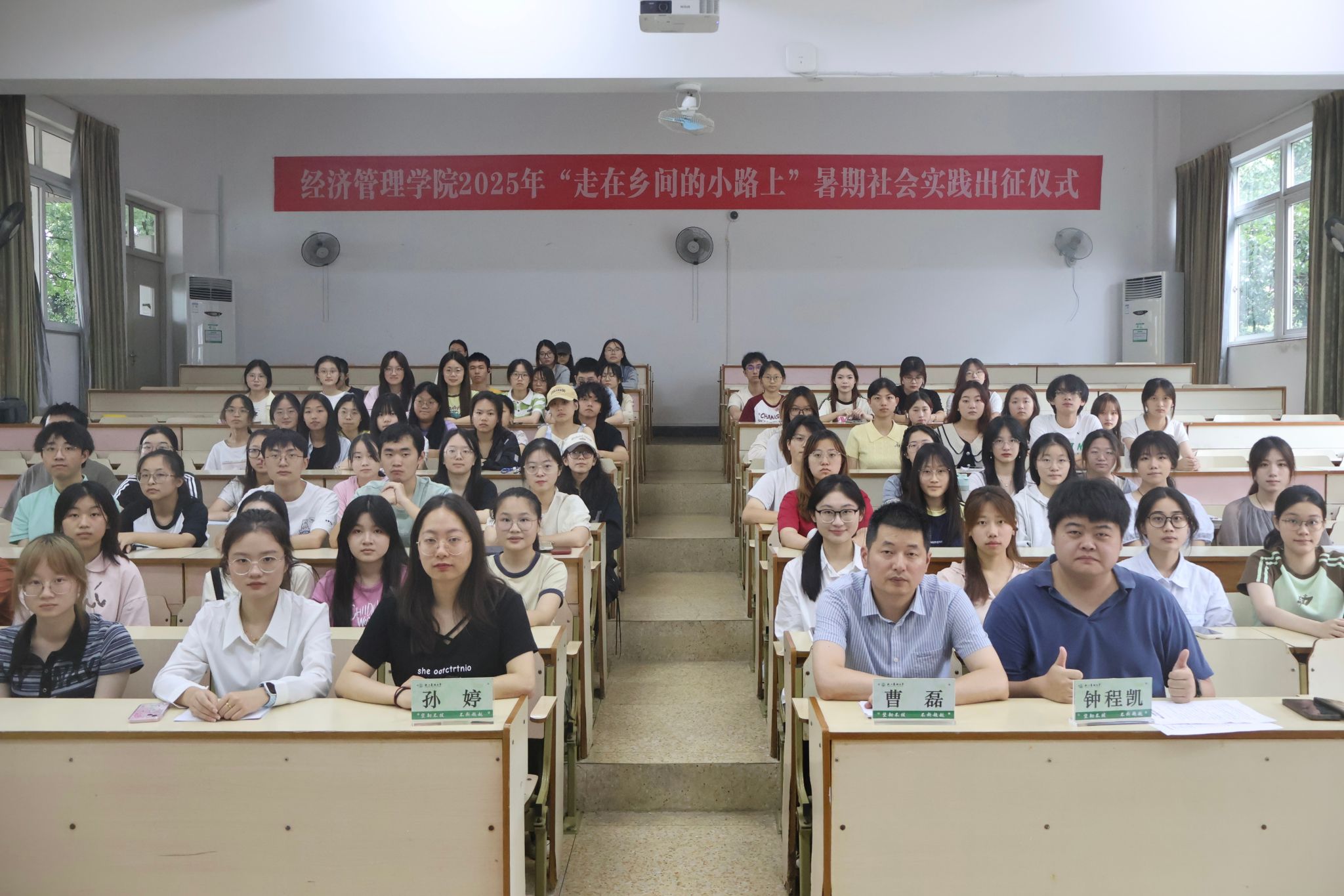 为深入学习贯彻习近平新时代中国特色社会主义思想,引导和帮助广大学生上好理论与实践相结合的“大思政课”,近日,beat365在线唯一官网2025“走在乡间的小路上”暑期社会实践出征仪式在衣锦校区教学主楼116举行,院党委副书记曹磊、辅导员钟程凯、孙婷以及实践团队学生代表参加活动。