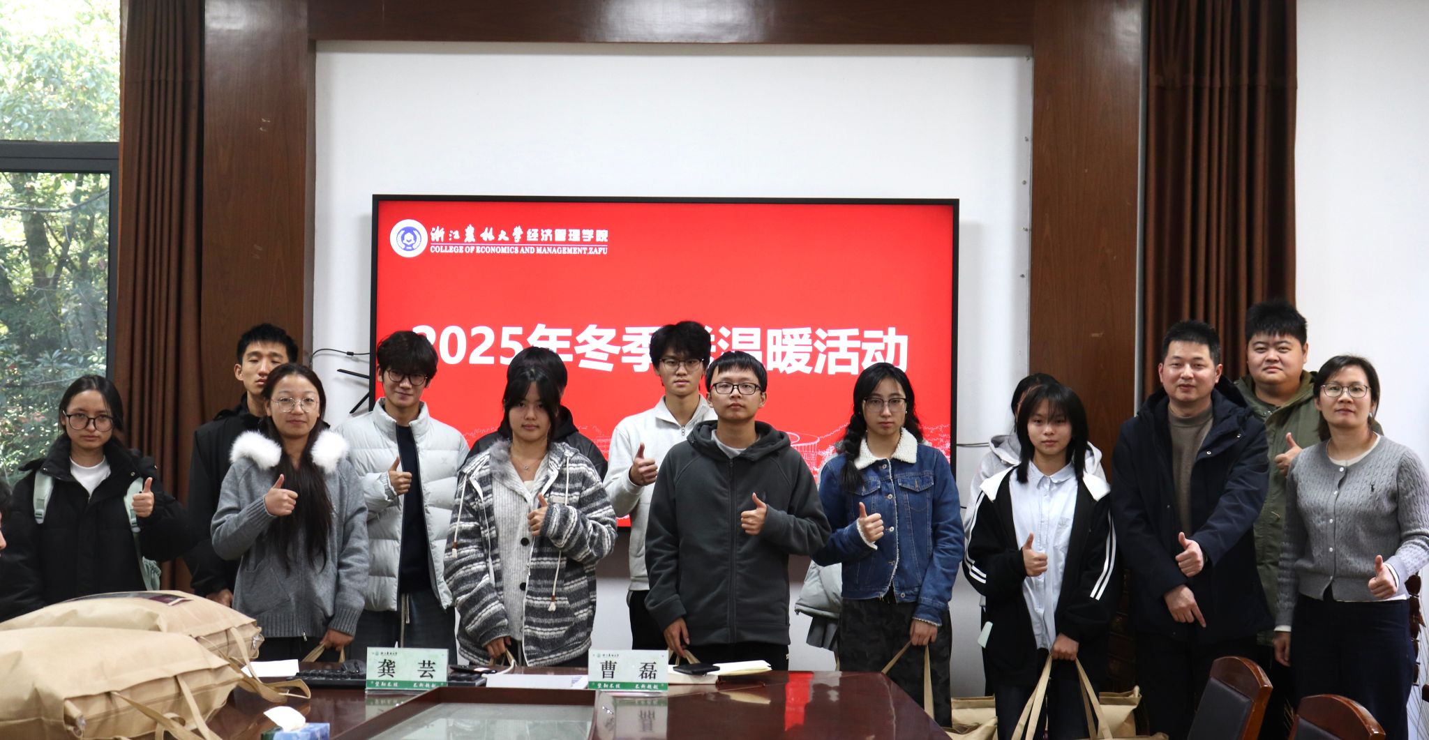 为进一步鼓励支持资助对象安心求学,11月26日,经济管理学院开展2025年冬季送温暖活动。学院党委副书记曹磊、学生办主任龚芸、辅导员钟程凯、陈琪,以及受资助学生代表参加活动。