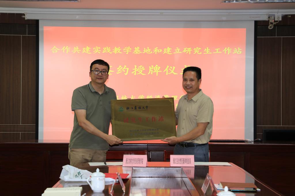 随后,双方负责人进行了“教学实践基地”和“研究生工作站”签字授牌,并为校外实践导师颁发了聘书。双方还就具体合作内容和工作推进机制等方面进行了深入沟通交流,初步达成了一致意见,并表示将在自然资源管理领域的科学研究、人才培养、资政决策等方面开展高水平合作。
