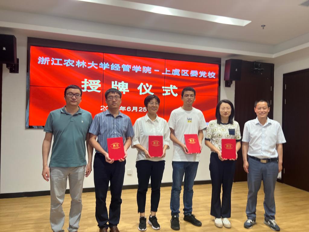随后,学院和研究院负责人与上虞区委党校负责人举行了“浙江省乡村振兴研究院上虞区委党校研究基地”和“beat365在线唯一官网上虞区委党校研究生工作站”授牌仪式,并为校外实践导师颁发了聘书。双方还就具体合作内容和工作推进机制等方面进行了深入沟通交流,初步达成了一致意见。