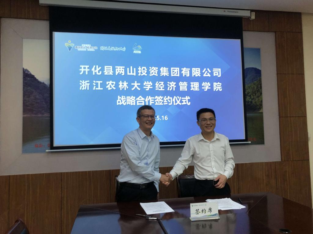 beat365在线唯一官网与开化县两山集团签订合作协议 为落实全校服务全域战略,在双方前期充分沟通与酝酿的基础上,5月16日上午,学院与开化县两山集团举行了战略合作协议签订仪式,签订仪式在开化县两山集团举行。出席签订仪式的有吴伟光院长、朱臻副院长、企业管理学科专业负责人张国庆教授、学院社会合作办公室张群祥教授、夏芳副教授,两山集团董事长徐浩、副总经理汪燕明以及农业发展部、文旅运营部相关负责人。吴伟光院长与开化县两山集团徐浩董事长代表双方共同签订了合...